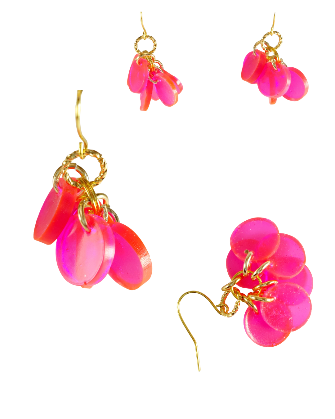 Neonruusu – pinkit hartsikorvakorut kultaisin korunosin