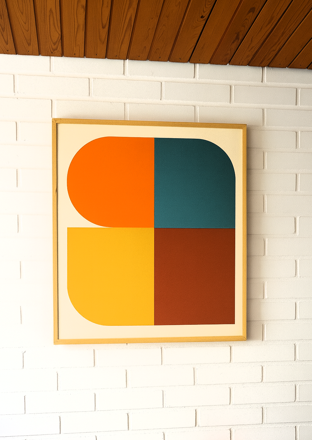 Mockup-kuvat näyttävät yhden mahdollisen tavan – miltä teos voisi näyttää seinällä.