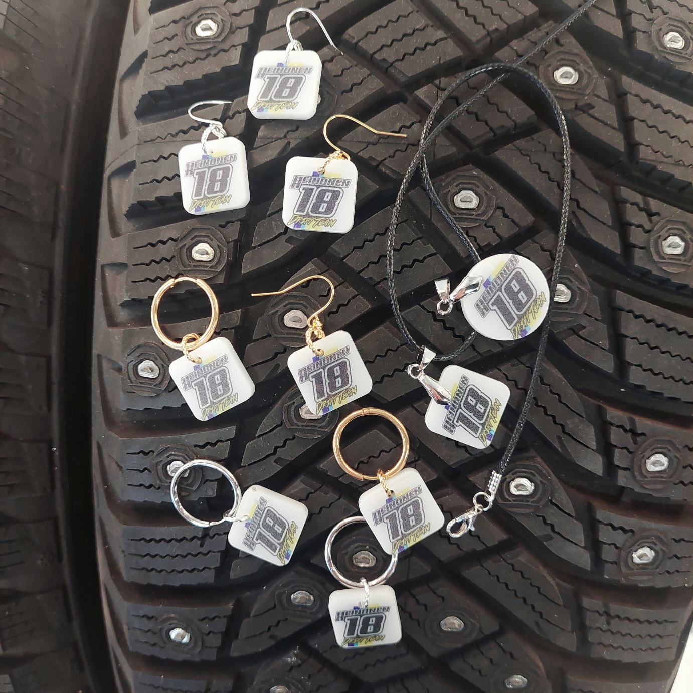 Logo koruksi? Tältä voisi näyttää tiimisi logo kevyessä ja monikäyttöisessä korussa! Kuvan esimerkit ovat Heinonen Drift Team™ -logolla.